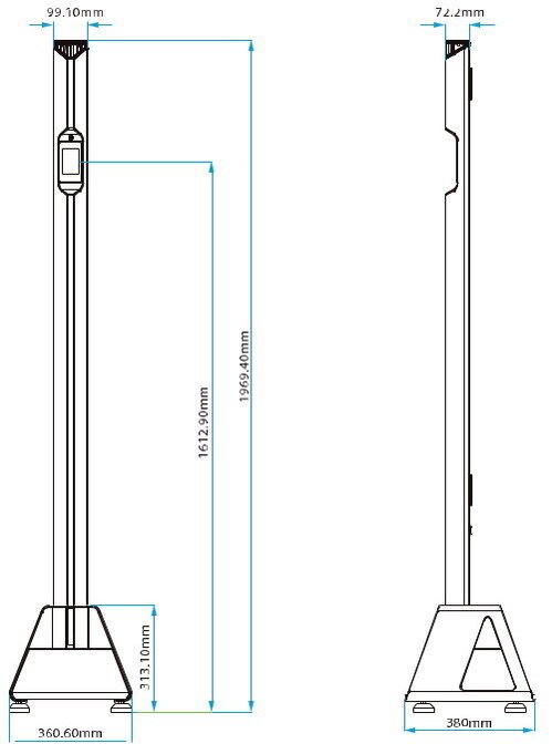 Dimensioni: (L x P x A): 360,6 x 380 x 1969,4 mm