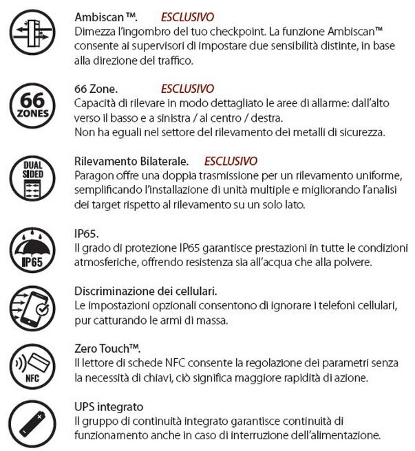 - Certificazione ECAC 2.1: Prestazioni verificate e garantite secondo uno degli standard più severi a livello internazionale per il rilevamento metalli, assicurando la massima affidabilità operativa.