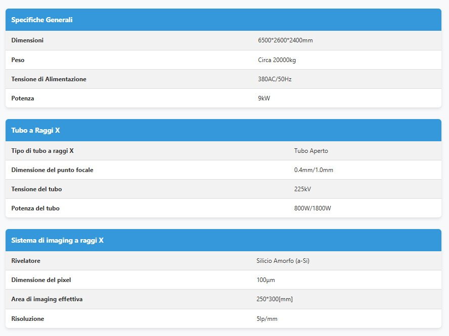 - Alta Potenza per Media Penetrazione: Generatore a raggi X da 225 kV ottimizzato per ispezionare componenti in leghe leggere (alluminio, magnesio) e plastiche di medio spessore con altissima qualità dell'immagine.