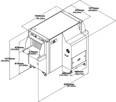XRC 6040DV - Sistema a raggi-X per la verifica dei bagagli a mano doppia vista.