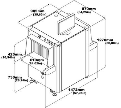 Il design compatto (147x87x120 cm) e il peso contenuto (455 kg) lo rendono ideale per installazioni in spazi ridotti, come piccoli aeroporti, uffici governativi o aziende private. Nonostante le dimensioni ridotte, l'impianto mantiene prestazioni eccellenti con una capacità di carico di 165 kg e un nastro trasportatore regolare a 0,20 m/s.